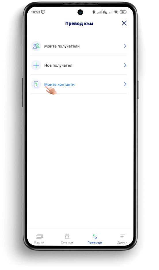 Стъпка 1: В меню "Преводи" избери меню "Моите контакти".