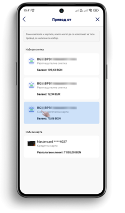 Стъпка 4: Избери сметка, от която искаш да извършиш превода.