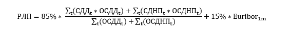 РЛП се определя и актуализира ежемесечно на база обновените данни от горепосочените източници и влиза в сила от първия работен ден на месеца, следващ месеца на определяне. Прилагат се последните налични актуални данни, публикувани от лихвената статистика на БНБ и стойност на -месечен EURIBOR, съотносим към датата на последните актуални данни от лихвената статистика на БНБ (Пример: РЛП от 1-ви юли се определя на база на данните, публикувани от БНБ в края на юни, касаещи месец май заедно със стойността на 1-месечен индекс EURIBOR, последно котиран за месец май).